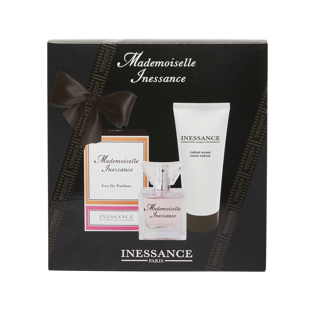 Le coffret Mademoiselle Inessance contient une Eau de Parfum 50ml et une Crème Mains 100ml :