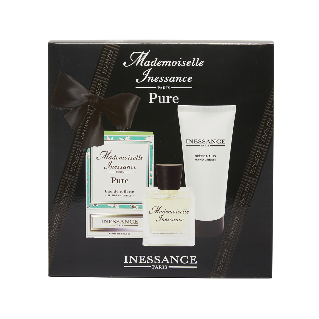 Le coffret Mademoiselle Inessance contient une Eau de toilette 50ml et une Crème pour les mains 100ml.