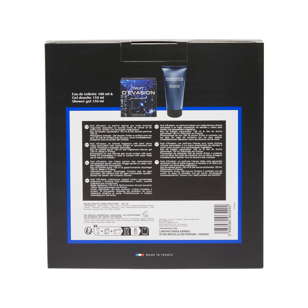 Une fragrance aromatique boisĂ©e intense Ă destination des hommes indĂ©pendants et dĂ©terminĂ©s, qui Ă©crivent le scĂ©nario de leur vie et partent Ă la conquĂȘte de la nuit. Le coffret Nuit d’Evasion de Inessance contient une Eau de Toilette 100ml et un Gel Douche Corps & Cheveux 150ml: Une sensualitĂ© magnĂ©tique dĂ©gagĂ©e par un parfum tonique d’argrumes et de bois de santal.