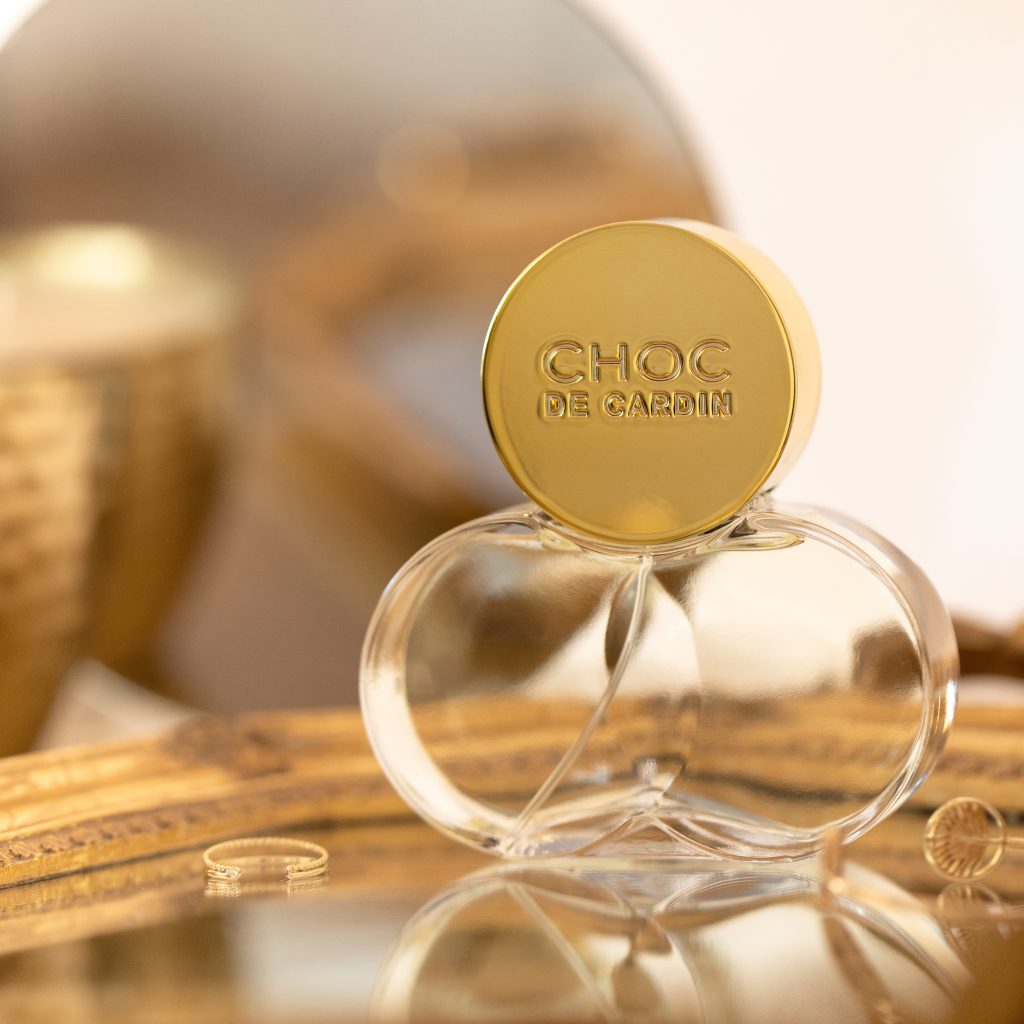 Lancé en 1981, Choc est le premier parfum féminin lancé par Pierre Cardin.