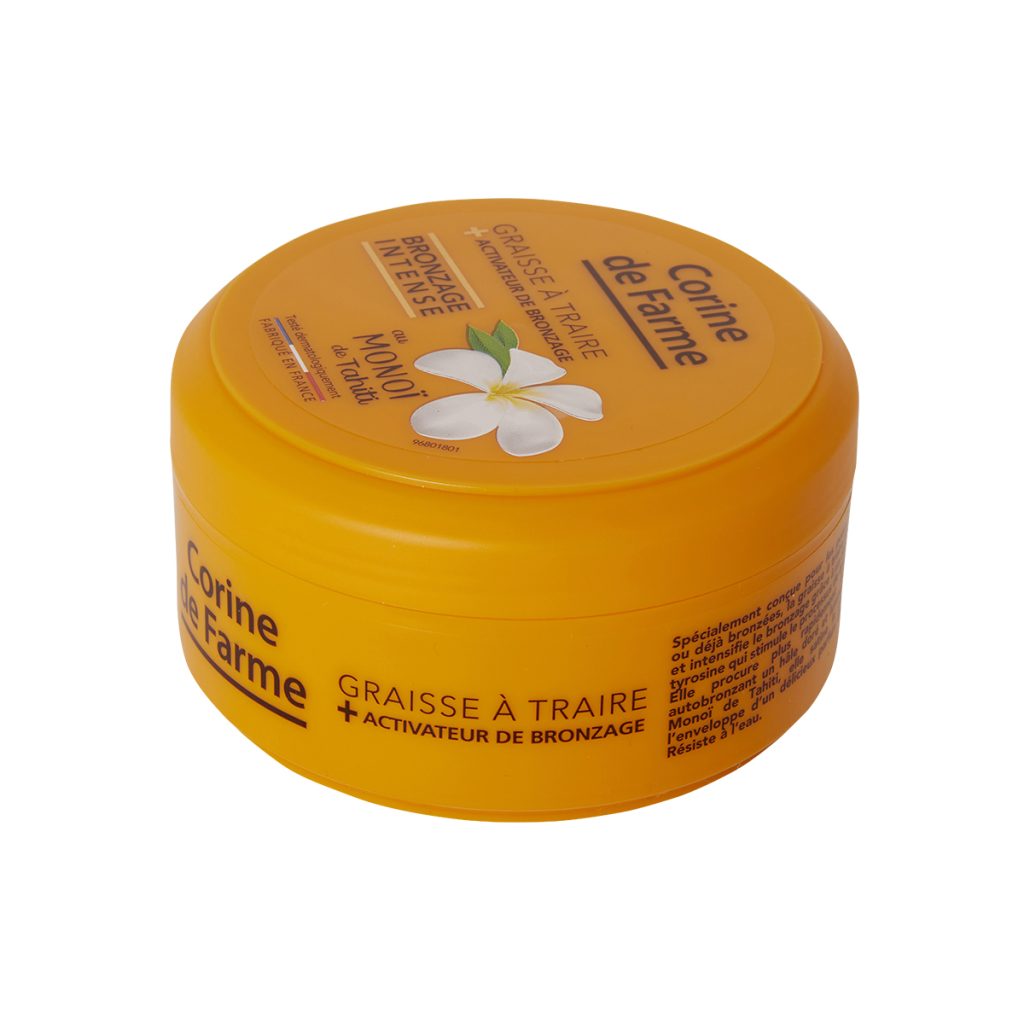 Spécialement conçue pour les peaux mates ou déjà bronzées, cette graisse à traire Corine de Farme active et intensifie le bronzage grâce à un dérivé de tyrosine qui stimule le processus de bronzage.