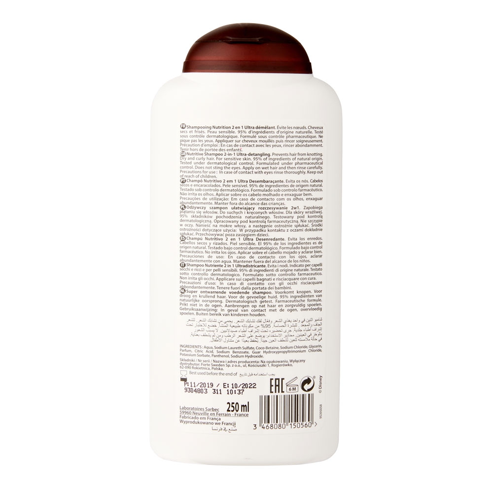 Rejoins l’univers de Vaiana, la princesse polynésienne avec le Shampooing Nutrition 2en1 Ultra Démêlant Vaiana, spécialement conçu pour les cheveux secs et frisés de vos petites princesses. Sa formule Clean Beauty 2en1 nettoie tout en douceur et démêle les cheveux tout en les laissant délicatement parfumés.