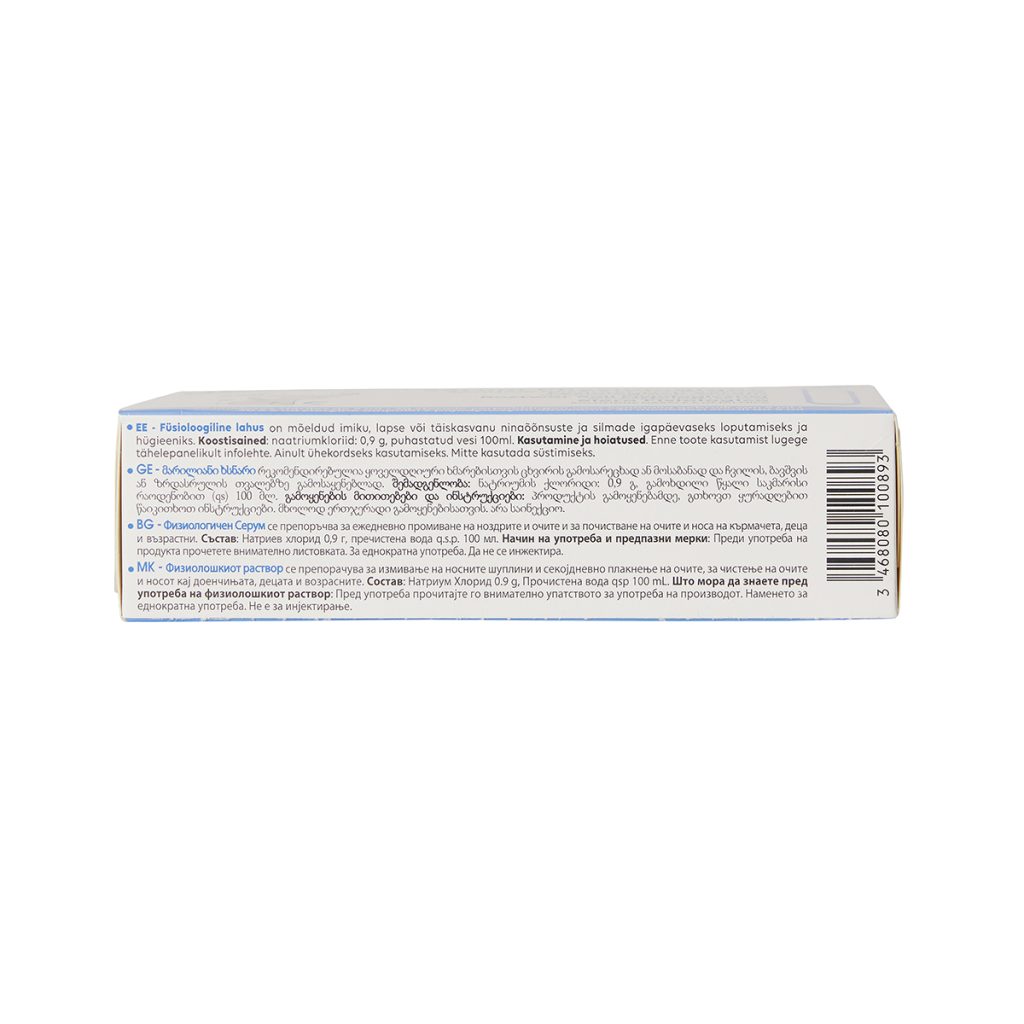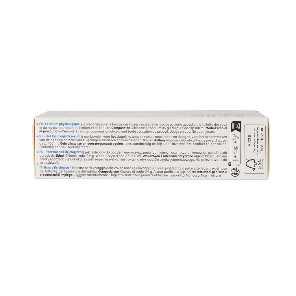 Pour la toilette des yeux : versez le sérum sur une compresse stérile, puis essuyez délicatement la paupière de bébé.